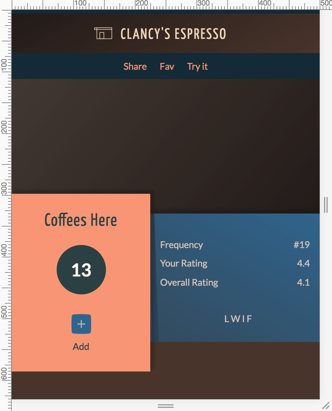 I’m happy with this final design. I can now place these controls wherever they need to go on the UI and they’ll initiate with state from the server, then manage it locally through Vuex. As a bonus you get a nice little page load animation with the star filling up and the list clicking on if the cafe is active on the list.